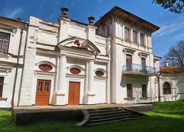 Давайте вспомним: В 1788 году Онуфрий Орловский решил построить усадьбу в палладианском стиле, окруженную большим парком, разумеется. Для этого были приглашены итальянская знаменитость Доменико Мерлини и шотландский паркостроитель МакКлер. Труды увенчались успехом, усадьба прекрасна даже сегодня. Сохранились: въездные ворота, обширный дворец с колоннами и атлантами, водонапорная башня, стилизованная под донжон с обзорной площадкой, бассейн с источником и обширный парк с двумя прудами. Во дворце сейчас находиться детский санаторий. В интерьерах частично сохранились лепнина и панели под мрамор. Парк спроектирован в форме кленового листа с широко расходящимися аллеями. Знаменит 200-летними веймутовыми соснами.