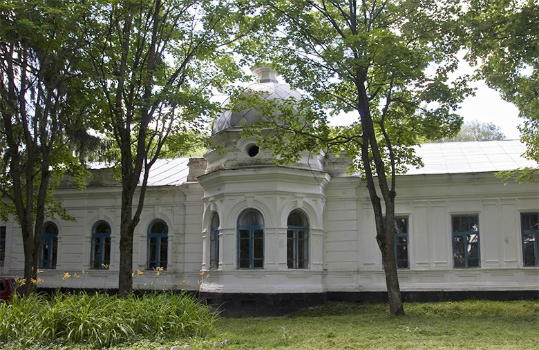 Давайте вспомним: В 1788 году Онуфрий Орловский решил построить усадьбу в палладианском стиле, окруженную большим парком, разумеется. Для этого были приглашены итальянская знаменитость Доменико Мерлини и шотландский паркостроитель МакКлер. Труды увенчались успехом, усадьба прекрасна даже сегодня. Сохранились: въездные ворота, обширный дворец с колоннами и атлантами, водонапорная башня, стилизованная под донжон с обзорной площадкой, бассейн с источником и обширный парк с двумя прудами. Во дворце сейчас находиться детский санаторий. В интерьерах частично сохранились лепнина и панели под мрамор. Парк спроектирован в форме кленового листа с широко расходящимися аллеями. Знаменит 200-летними веймутовыми соснами.