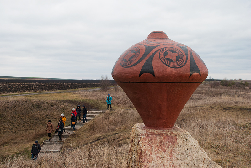 Вокруг нет ни одного городка, ни одного села и даже ни одного киоска, но вы увидите стоящий на камне горшок трипольской культуры. Это, конечно, копия, но скоро вы увидите и оригиналы!