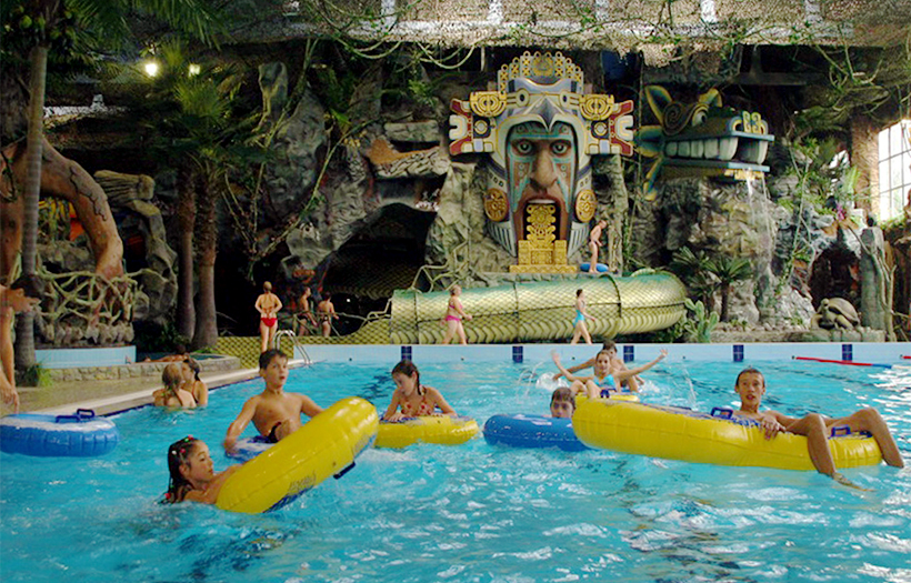 В водах «Ленивой реки» посетители отдыхают, раздумывая, в кокое из пяти кафе стоит зайти. Открыт аквапарк с июня по август.