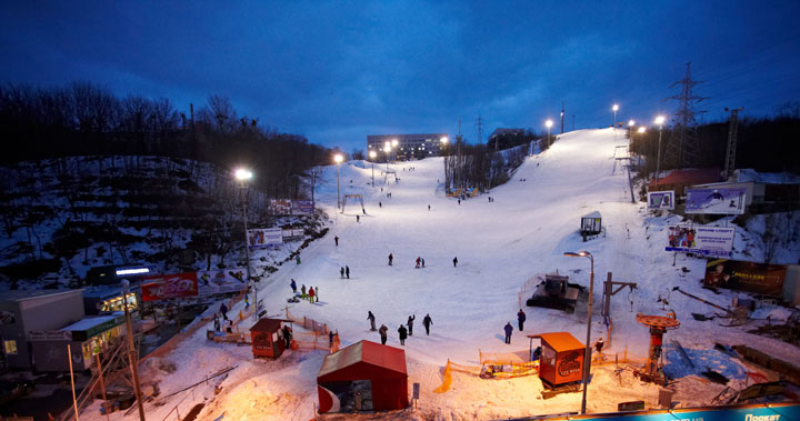 Городской горнолыжный комплекс расположен в центре Киева недалеко от Республиканского стадиона. Очень популярное место отдыха киевлян, поэтому готовьтесь к толпе. Его ценят за саму возможность после трудового дня покататься на лыжах или сноуборде. На территории комплекса функционируют 2 трасы разных уровней сложности. Есть ночные катания (в ночь с субботы на воскресенье). Комплекс часто проводит акции и конкурсы.