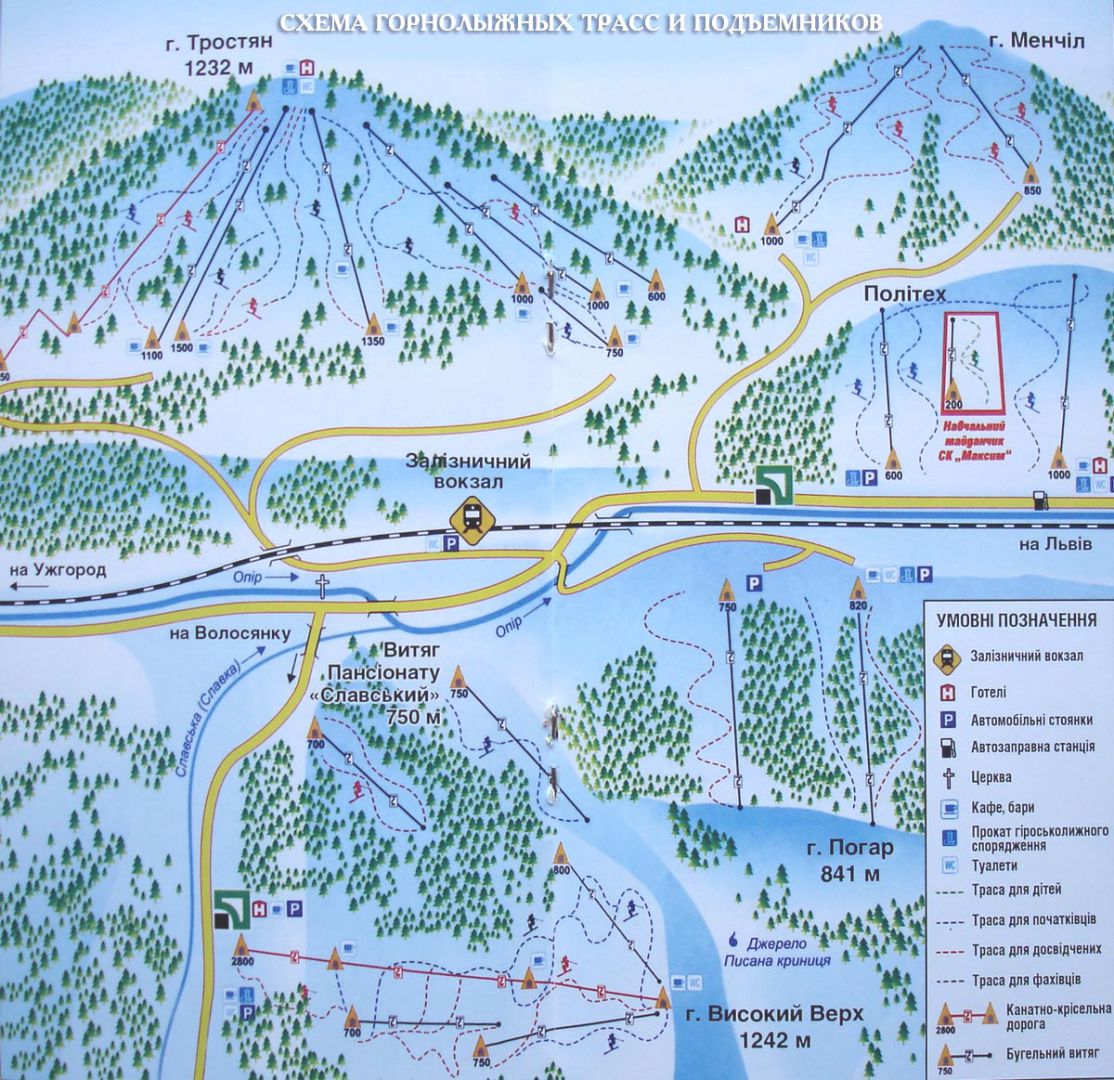 Популярный карпатский горнолыжный курорт на горном хребте Бескиды в долине рек Опир и Славка у горы Тростян. Оборудовано 20 подъемников, среди трасс 6 имеют международный уровень. Из-за комфортных климатических условий, удобного месторасположения поселка и разнообразию трасс сюда ежегодно едут тысячи поклонников горнолыжного спорта. Поэтому средняя продолжительность ожидания очереди на подъёмниках 15-20 минут.