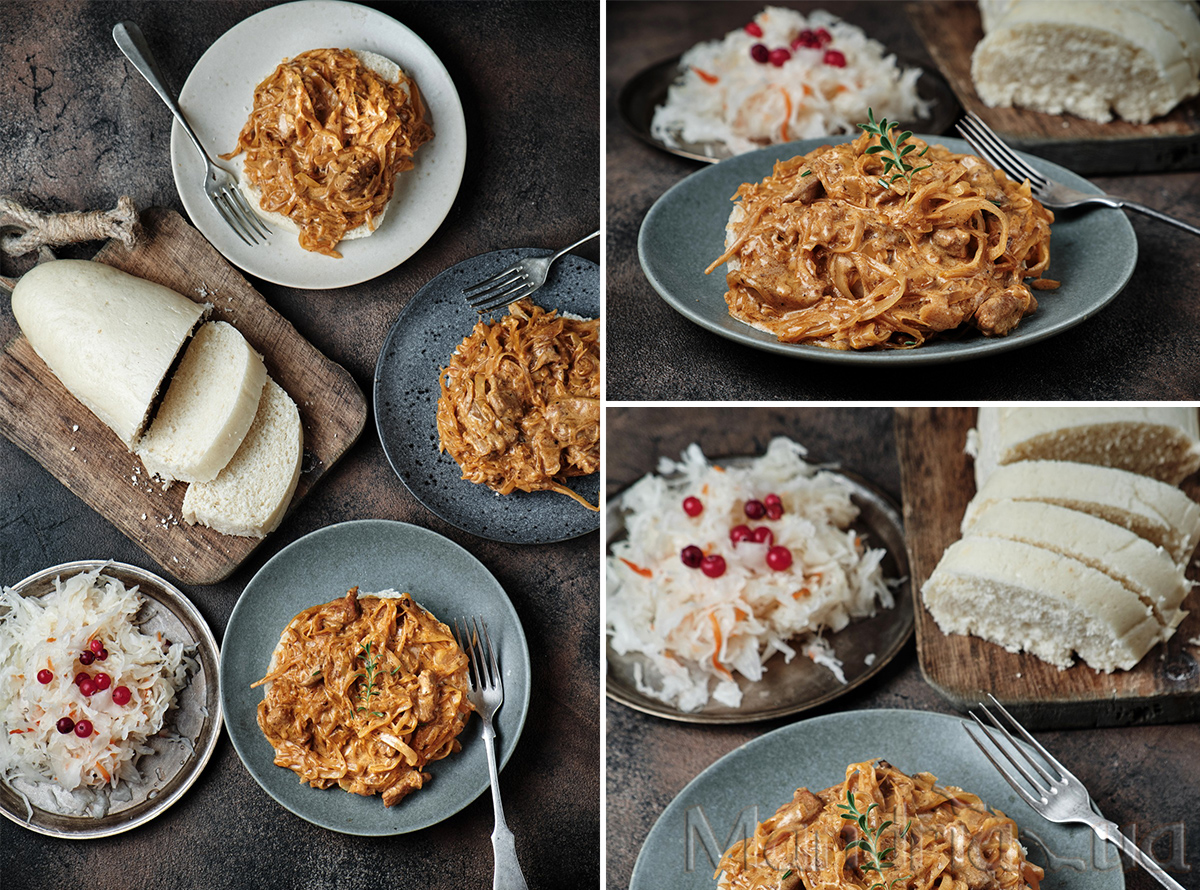 Кнедлики купіть. Вони є на відділі готової їжі в усіх місцевих супермаркетах. Це хліб, приготований на пару. Він не має скоринки. Коли ми тільки приїхали на Закарпаття, то їли його як звичайний хліб, робили бутерброди. Потім я дізналася, що це гарнір до сегединського. Рецепт напишу нижче, а на фото можете побачити, як кнедлики виглядають.