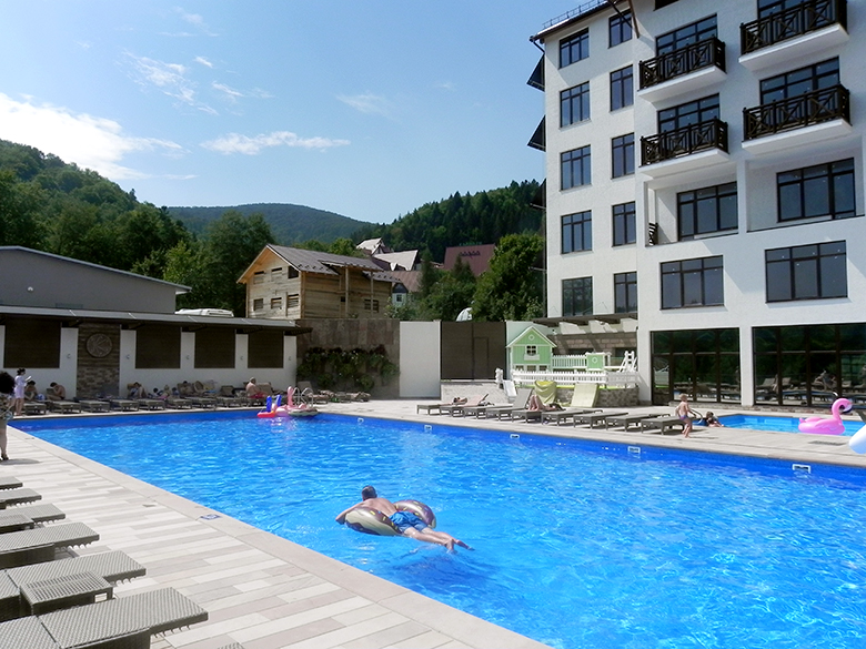 Серед основних критеріїв при виборі місця проживання була наявність басейну, гарні краєвиди, оптимальне співвідношення ціни та якості і зручна дорога до готелю чи садиби. Переглянувши декілька варіантів у необхідному ціновому діапазоні та з необхідним набором базових послуг, а також керуючись відгуками знайомих, ми зупинили свій вибір на готелі «Станіславський», що знаходиться в місті Яремче Івано-Франківської області, і уточнили наявність місць на дати, що нас цікавлять.