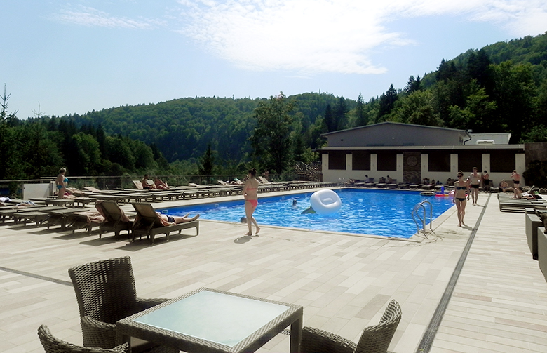 Ми одразу пішли до басейну, виглядає він на фоні гір дійсно фантастично.