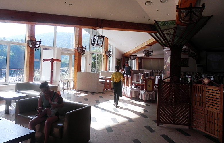 Оскільки сніданок був по-карпатськи щедрий, то протягом дня нам вистачило снеків та напоїв. А потім була вечеря у ресторані. Меню досить різноманітне. Можна взяти деруни зі сметаною, бануш чи вареники, що коштують по 30 грн за порцію, а можна салат, форель на грилі чи шашлик. Вартість гарної вечері на одного може бути від 100 грн з напоєм та десертом. Вечеряли ми у «Станіславському» двічі, в суботу та неділю, і нам все сподобалося – дуже смачно.