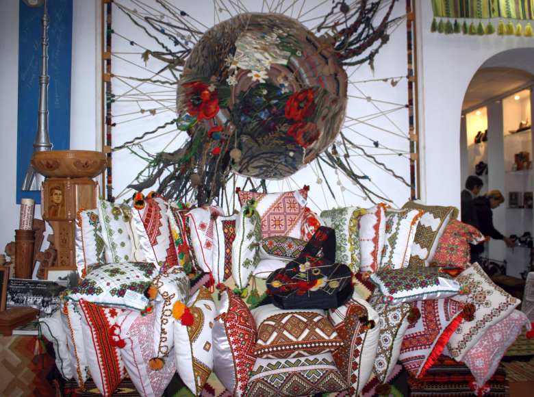 Все встречи с жителями Кутов, о которых мы рассказали выше, случаются с подачи хозяина усадьбы Григория Томюка. Он сам – знаток и хранитель традиций, и окружают его такие же интересные люди. В «Эко Крпатах» есть выставка в несколько тысяч экспонатов, размещенная на стенах, потолке и полу верхнего этажа. Оружие, маски и амулеты, статуи древнегреческих героев и египетских фараонов, образцы горных пород Карпат и одежды местных жителей, керамика, предметы быта и произведения гуцульских промыслов и искусства, старинные монеты, музыкальные инструменты местных мастеров (свирели, дрымбы, цимбалы и трембита), топорки-бартки, золотой песок в пробирке, намытый Григорием на одной из местных рек, и многое другое. Эклектика? А может просто интерес и любовь к жизни во всех ее проявлениях.