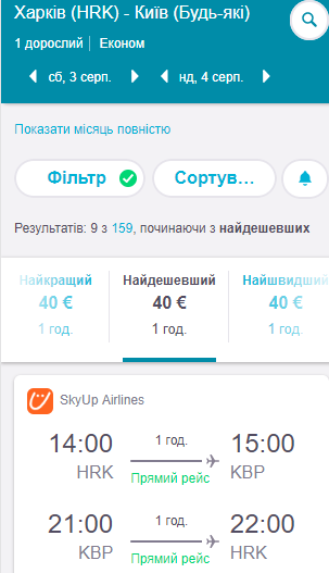 SkyUp Airlines пропонує квитки на разові рейси з Харкова в Київ та назад.