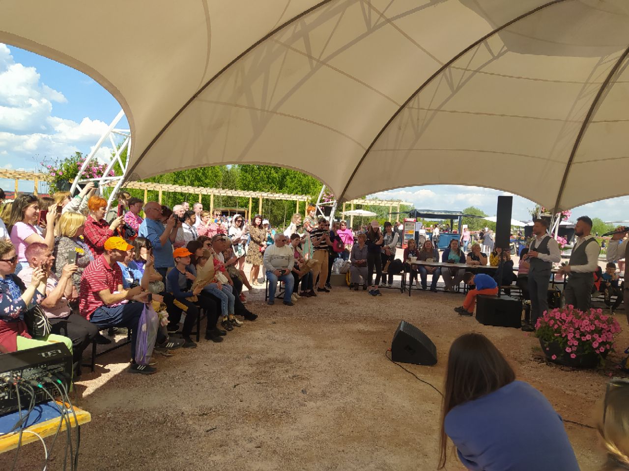 Суботнього ранку 13 травня до Добропарку приїхали волонтери, ресторатори, засновники різноманітних проектів, вчені, музиканти. А ще зібралися місцеві жителі з селища Мотижине – познайомитися з гостями, перезавантажитися і відпочити з користю. Мотижине – село, яке разом з Добропарком майже місяць переживало всі біди окупації. “Ми з волонтерами приїжджали в Добропарк після звільнення від загарбників, бачили розбиті будівлі і понищені рослини. Цього року тисячі людей приходять милуватися долиною тюльпанів, і це свідчення нашої незламності”, – говорить Валерія Бондаренко, керівниця і креаторка проєкту “Відлуння руйнації” творчого об’єднання “Славута”.