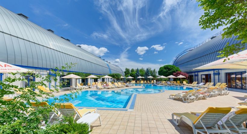 Для детей – отдельный бассейн глубиной не более 45 см, 28-30⁰С. Также есть еще один летний бассейн длиной 18 м и премиум-бассейн под открытым небом.