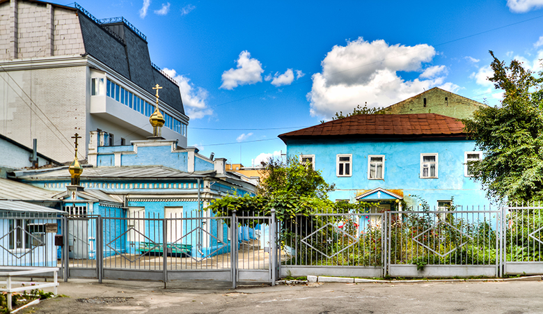 Храм: После грандиозного пожара 1811 года земля на Подоле была недорогой. Староверы приобрели довольно большой участок на котором, в 1897 году появилась кирпичная прямоугольная постройку. Узнать о культовом предназначении сооружения можно лишь по двум крохотным декоративным главам: одна над молитвенным залом, другая над тамбуром. Внутри храм символически разделен на две половины – мужскую и женскую. Здешний храмовый иконостас составлен из 300 уникальных икон. В тридцатые годы прошлого века храм был превращен в общежитие для работниц швейной фабрики, богослужения были возобновлены в годы оккупации. С тех пор Успенский храм является действующим.