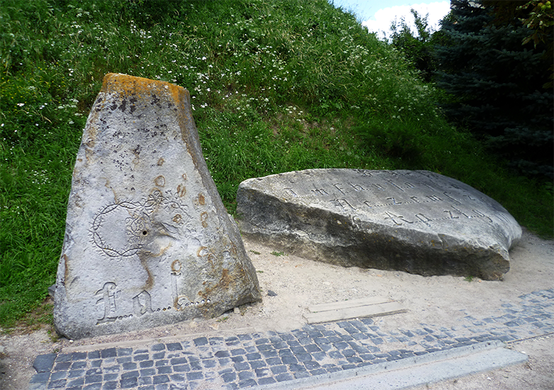 Камни нашли в лесу, за селом Новосилки, что неподалеку от Золочева. Шрифт надписей похож на готическую инкунабулу, но, увы, ею не является. Камни перевезли на замковое подворье, где они и ждут своего Дена Брауна. А заодно обещают исполнение желаний. На одном из камней неизвестный резчик изобразил два венка: цветочный и терновый. Есть там и аккуратная дырочка. Чтобы заветное желание осуществилось, нужно вложить палец в дыру, подумать о желанном и повернуть палец, словно ключик. Если желание материальное – в сторону тернового венка, если романтическое – в сторону цветочного.