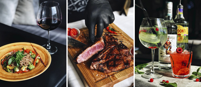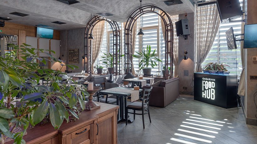 Ресторан Gagarinn FOD HUB рассчитан на 200 гостей. Это прекрасное место для проведения бизнес-встреч, корпоративных ланчей или торжественных мероприятий. Шеф-повар Алексей Дубровский фантазийно миксует европейскую, азиатскую, украинскую и даже одесскую кухни. Must-eat для вегетарианцев: полента со свежим шпинатом, соба с овощами и безглютеновые десерты из меню «Чистое здоровье». Must-eat для мясоедов: стриплойн и T-bone стейки.