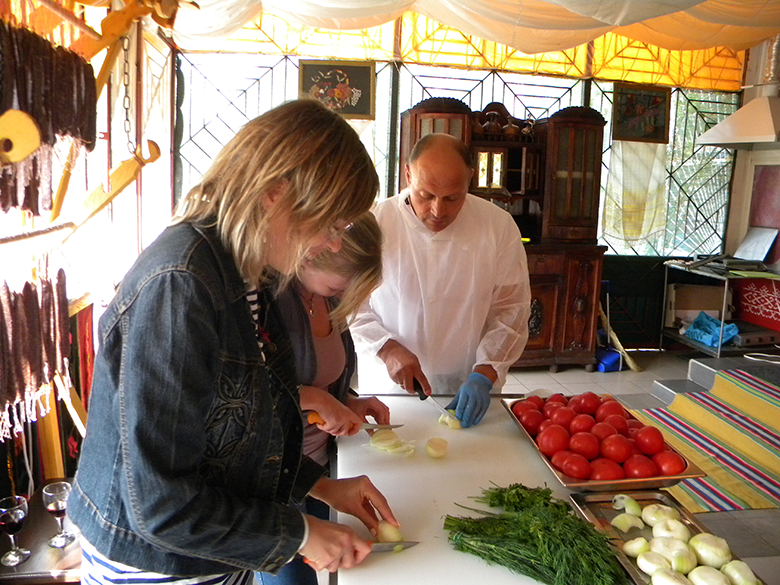 Если вы приедете в Болград, вас пригласят в механу «Балкански ястия». Болград в основном населен болгарами, поэтому здесь часто встречаются подобные названия. Механа – это сочетание заезжего двора с рестораном, а «Балкански ястия» переводится как «Балканские вкусности». Это заведение знаменито еще и тем, что его владельцы охотно устраивают для туристов мастер-классы по приготовлению болгарских и других региональных блюд. Мы, к примеру, готовили курбан по-добруджански – специфическое рагу из молодой баранины с овощами и пряными травами, характерное для региона Добруджа – придунайской части Болгарии.