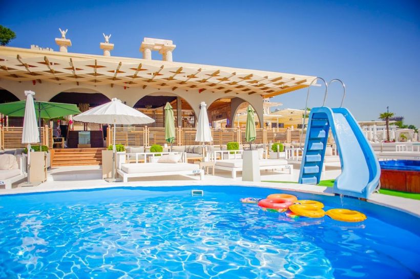 Это большой и красивый пляжный клуб в стиле Древней Греции, где вы будете загорать на удобных шезлонгах возле моря или большого бассейна, пить вкусные холодные коктейли, обедать и ужинать блюдами одесской, восточной или средиземноморской кухонь в ресторане на берегу. Здесь вы отвлечетесь от городской суеты и насладитесь отдыхом.
