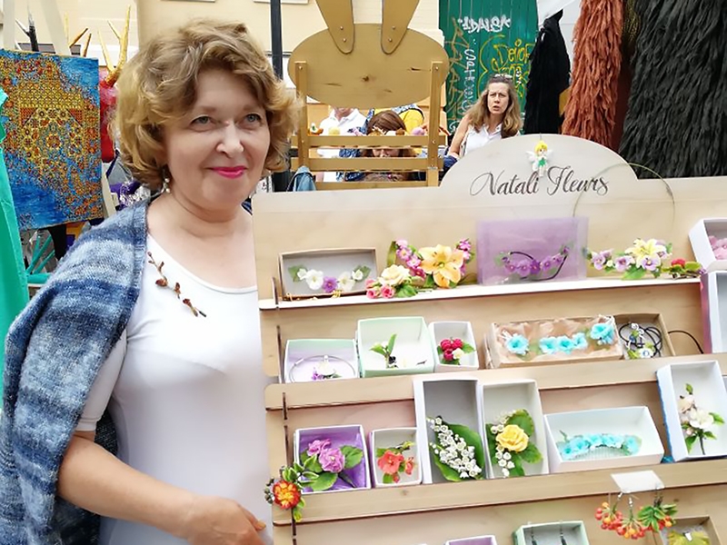 Наталья Вовченко: «Женщина с цветами не просто привлекает внимание к себе красивым украшением, – она другая, не такая, как всегда. Она сама это чувствует и это чувствуют все окружающие. Когда я смотрю на наших девушек, женщин, то мне хочется их всех украсить цветами. Этой – брошку с ландышами на пиджак под белую блузку – ну просто просится. Этой – волосы заколку с незабудками под цвет ее голубого шарфика – смотрелось бы идеально. Этой – серьги с лилиями под черное платье.