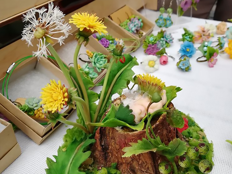 Очень яркие и правдоподобные «девчачьи» фиалки, ягодки, розы, хризантемы мастер украшений Наталья Вовченко делает из японской полимерной глины. В японском стиле, конечно. Не каждый, увидев колье, серьги или браслет поймет, что это бижутерия. Для девушки, сестры, подруги, мамы – неповторимый подарок к любому празднику!