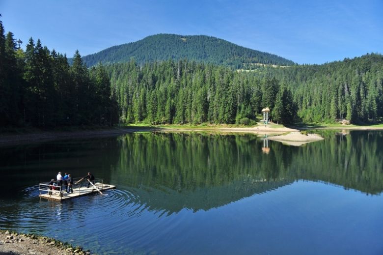 Существует легенда о том, что самое красивое озеро Закарпатья появилось из-за потока слез, пролитого графской дочерью Синью, по погибшему возлюбленному – пастуху Виру. Потому сегодня на полуострове возвышаются скульптуры влюбленных – Сини и Вира. Синевирское озеро, или «Морское око», находящееся на высоте 989 м над уровнем моря, появилось еще в ледниковый период. Скалы обрушившись перегородили русло ручья, и с той поры, озеро наполняют воды горных потоков. В Синевир их вападает три. В среднем Морское око занимает площадь 7 га, а максимальная глубина колеблется от 20 до 22 м. Даже в самые жаркие дни температура воды не подымается выше 10º.