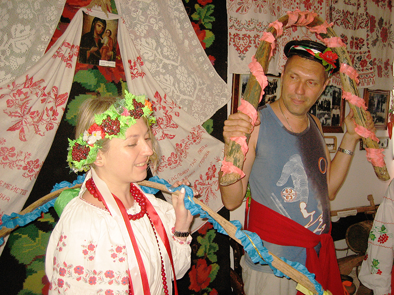 В этот единственный музей украинской свадьбы ежегодно приезжают 15 тысяч гостей. Здесь приветствуют и тех, кто только вышел из ЗАГСА, только собирается расписаться или уже давно состоит в браке и хочет отметить юбилей. Рады даже холостякам, которые с независимым видом знакомятся со свадебной атрибутикой, которую местный люд достает из своих закромов и несет в музей. Между прочим, в сундуке у невесты согласно традиции должно храниться 40 вышитых рушныков и 12 сорочек!