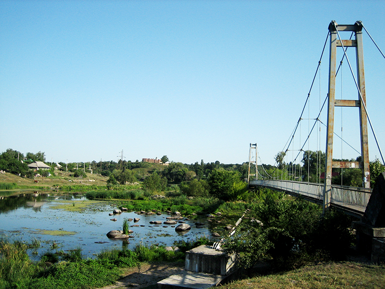 На самом деле «ям» здесь три: все они находятся недалеко друг от друга – на расстоянии примерно 100 м. Везде можно окунуться – была бы погода! А за последней купальней расположена еще одна местная достопримечательность – подвесной пешеходный мост, прозванный «Мостом любви», откуда открывается великолепный вид на живописные валуны и подводный мир реки Рось.
