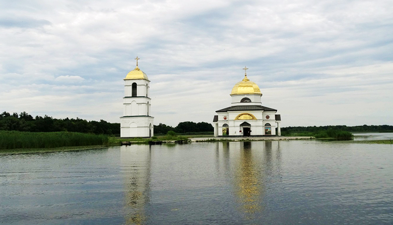 Неподалеку от Лысой горы расположена затопленная церковь с колокольней, построенная в 1812 году в стиле украинского барокко и тоже окруженная водой. Добраться к церкви со стороны Ржищева можно по воде на катере или по недавно построенному мостику – с противоположного берега Днепра.