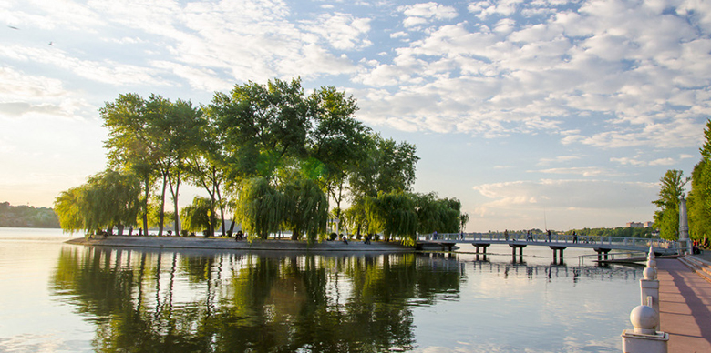 В Днепропетровске одно из самых популярных мест для прогулок – Монастырский остров. Сюда можно попасть по пешеходному мосту, увешанному замками счастья, или на скоростном тролле, ведущем к новой смотровой площадке, открывающей удивительный вид на город.