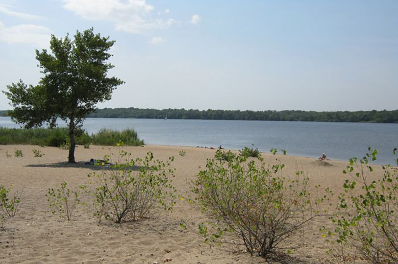 - Пляж находится за яхт-клубом. Добраться до него можно от станции метро «Героев Днепра» на троллейбусе №44.