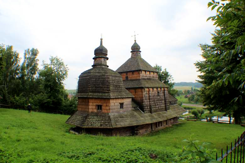 Высоко в горах между известными курортами Свалява и Сколе затерялось село Матков. Добраться сюда – то еще приключение, однако час тряски в собственном авто или полтора в маршрутке из Львова стоят того, чтобы увидеть этот шедевр бойковской школы народной архитектуры середины XIX века. Необычный многоярусный храм стоит на холме в центре села, а оттуда открывается чудный вид на зеленую долину реки Стрый и тонущую в туманах Бескидскую горную гряду.