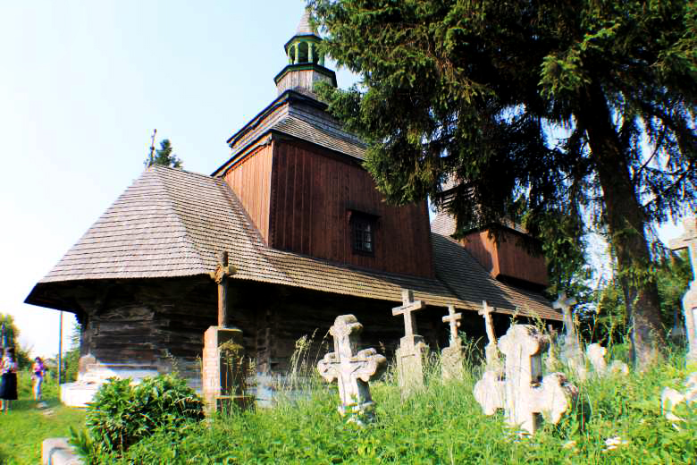 На бревнах, из которых собрана эта церковь (естественно, без единого гвоздя) сохранились надписи, потому-то мы и знаем имена ее создателей и год постройки – 1745. Впрочем, выглядит церковь так, будто ее и не строили вовсе, а стояла она тут посреди валунов на фоне карпатских вершин от сотворения мира. А внутри при взгляде на алтарь и резной иконостас, на неповторимую игру тени и света, льющегося из верхних окон, понимаешь, что непростой путь по практически бездорожью себя оправдал на все сто.