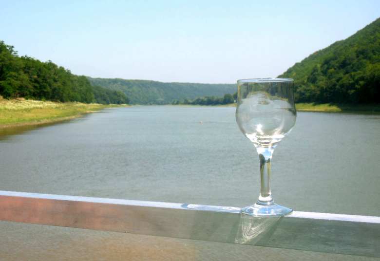 «Юрий» – с виду скромный, а заглянеш «в душу» – ахнешь. Нижняя палуба – три уютных каюты, кухонное царство, душевая, туалет и терраса. Верхняя – капитанская рубка, зона отдыха с общим столом и шезлонги. На кухне колдует шеф, а холодное вино из местных виноделен подет официант в бабочке. Это все приятно, но главное -то в этой истории – река и зеелные берега.