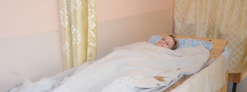 Клиента укладывают в кровать с теплой рожью на 20 минут (40 грн.), где он вдыхает аромат печеного свежего хлеба. Идет прогревание всех суставов, позвоночника, внутренних органов. Особенно это полезно для людей, у кого хроническое заболевание почек, радукулиты, бронхиты, воспаление легких, проблемы с органами малого таза. Приятно укутаться в теплое зерно, успокоиться и отдыхать.