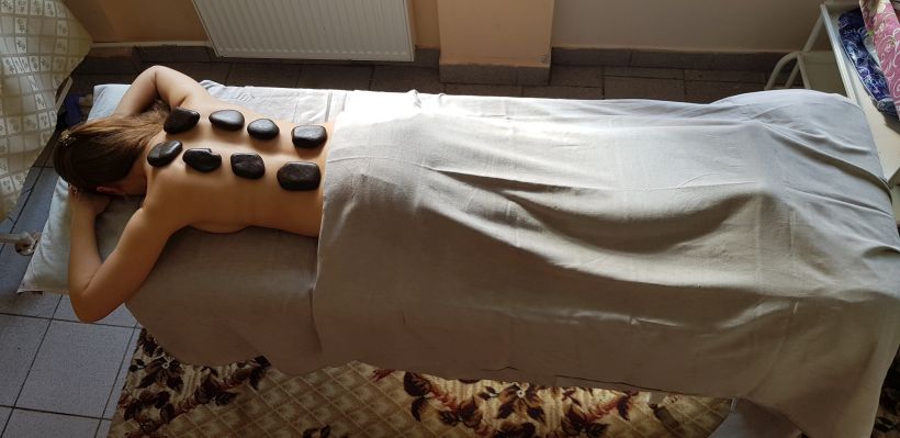 В массажном кабинете делают стоун-массаж теплыми камнями, массаж улитками на лицо, медовый массаж лица, стоп, шеи.