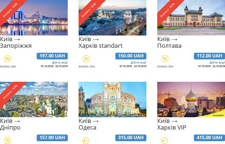 - Киев – Харьков – ₴150 в одну сторону
