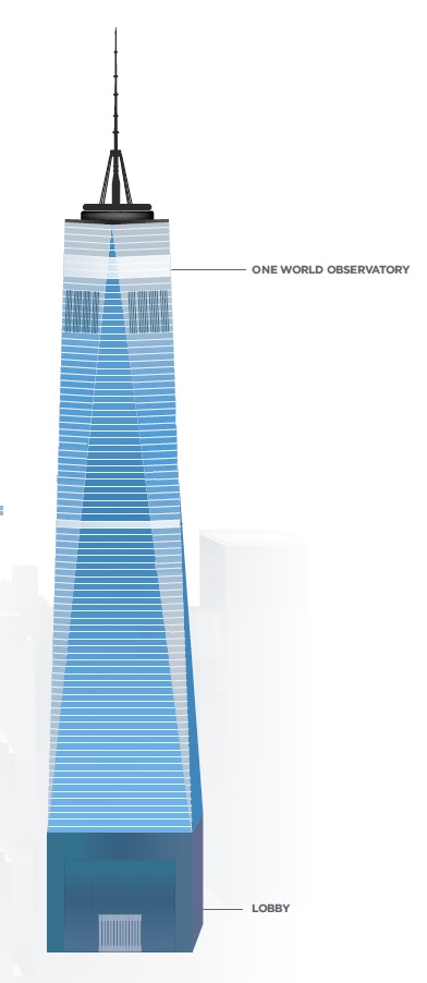 Хмарочос має триповерховий оглядовий майданчик One World Observatory, який розташований на 100-102 поверхах. Він знаходиться на висоті 386 м., що робить його найвищою точкою огляду в Нью-Йорку. Для відвідувачів оглядового майданчика є окремий вхід із зоною перевірки безпеки. Далі вони піднімаються на ліфтах Skypod лише за 47 секунд. Фактичний оглядовий простір знаходиться на 100-му поверсі, на 101-му поверсі – фуд-корт, на 102-му поверсі знаходиться простір для заходів. Окрім насолоди від захоплюючого краєвиду завдяки інтерактивним експонатам можна дізнатися більше про історію будівлі та міста Нью-Йорк.