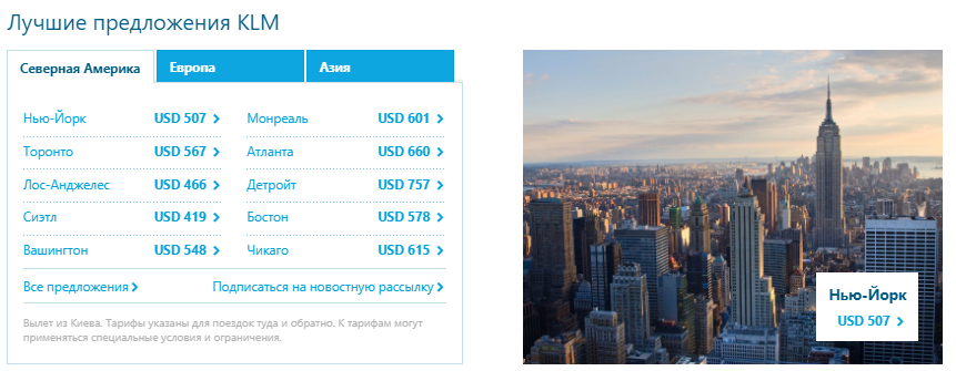 Акция AirFrance/KLM на рейсы в Северную Америку – от €356 в обе стороны. Период путешествия: 15.09.18 – 31.03.19