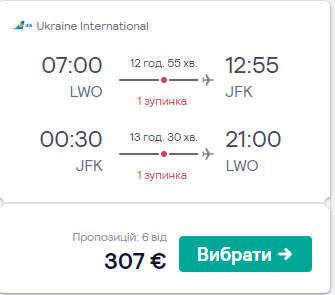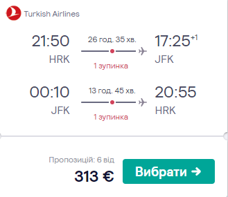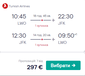 МАУ та Turkish Airlines пропонують знижені ціни з міст України в Нью-Йорк з великим вибором дат на період подорожей до кінця червня 2020 р.
