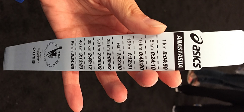 За 4 дня до марафона открывается экспо. Это спортивная выставка невероятных размеров. Там выдают стартовые пакеты. Очень советую отправиться туда в первый же день, пока посетителей не очень много и всё есть в наличии. Спортивная одежда, питание, гаджеты, аксессуары, приглашения на различные соревнования, фотозоны, конкурсы, подарки, всё со скидками, всё можно попробовать, продегустировать и протестировать. Распечатай браслет-напоминалку с раскладкой по дистанции на желаемый результат для равномерного бега или с ускорением. На экспо можно провести целый день и изрядно подустать. Это еще одна причина по которой лучше не идти туда в день перед стартом.