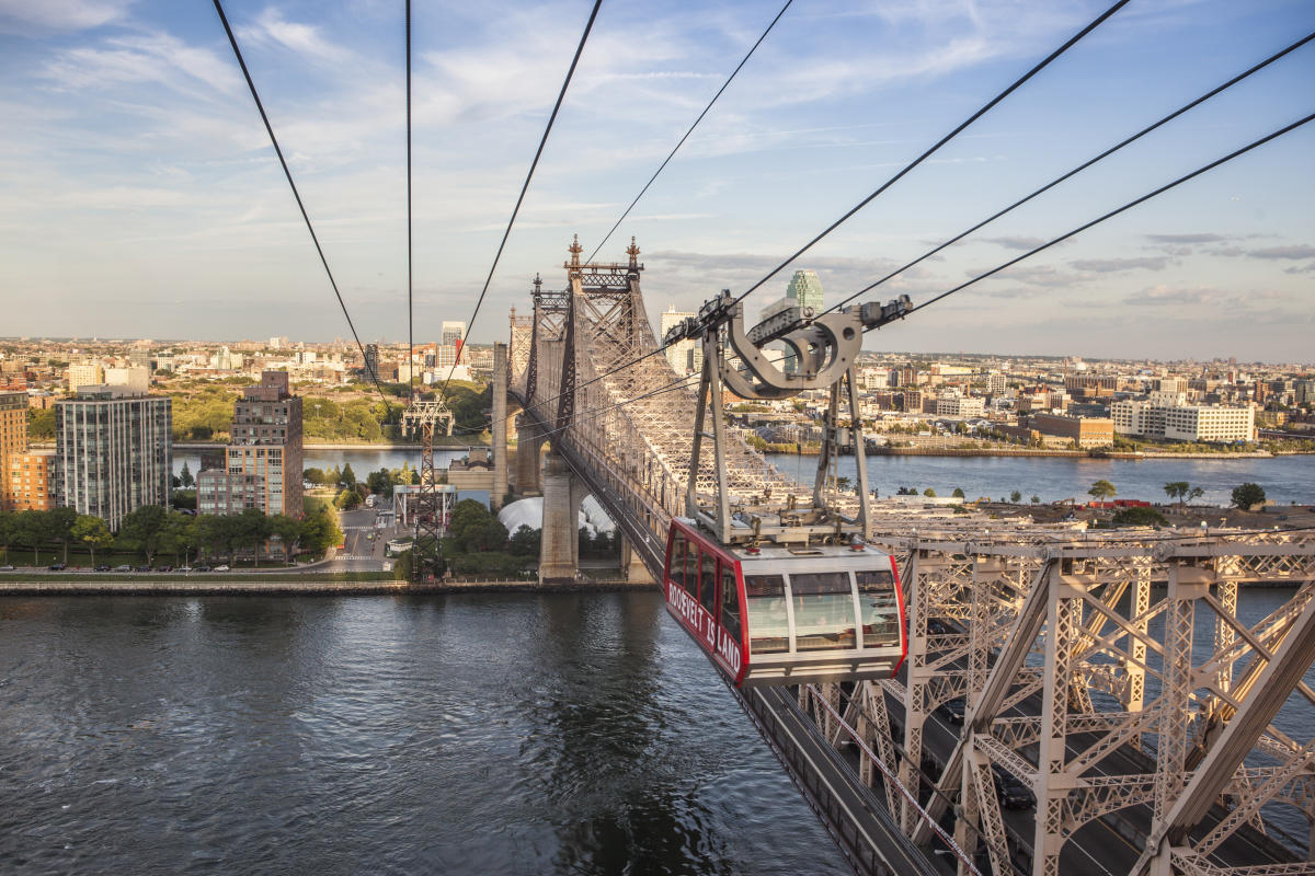 Манхеттен и небольшой остров Рузвельта связывают мост и канатная дорога The Tram (60th street – 2nd avenue). Ее основная задача перевозить людей. Двигаются кабинки медленно, всего около 30 км/ч и за 3 минуты перед вами открываются красивые виды на Мидтаун и Ист-Сайд. Что приятно, канатная дорога считается общественным транспортом и тут действует единая система оплаты для Нью-Йорка – Metro Card. Работает она с 6:00 до 2:30.