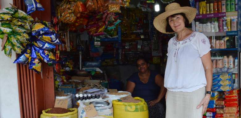 Вот они на прилавке – ананасы, бананы пяти-шести видов, зеленая с оранжевыми бочками папайя («дынное дерево»), маслянисто блестящие на срезе манго, ребристая карамбола и желтая в крапинку маракуйя, ряды фиолетовых мангостинов, красноватые вязанки колючих рамбутанов, каплевидные иссиня-бордовые авокадо, и над всем этим, когда бы ни приехал, гигантские гроздья оранжевых королевских кокосов.