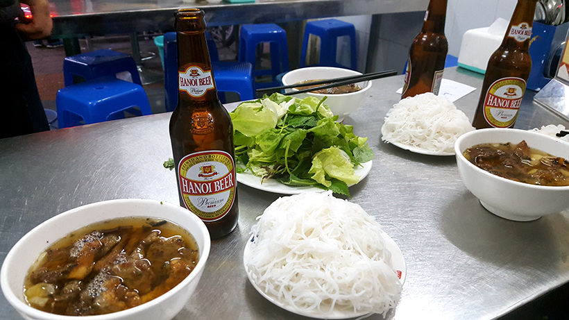 Самая универсальная еда – бун ча. Это рисовая вермишель, жареная свинина и зеленая приправа покорят вас мгновенно. Лучшее место в городе – Бун Ча Хуонг Лен. Полюбуйтесь фотографиями президента в рамке на стене, пока вы наслаждаетесь липкими полами, грязными столами и бесцеремонным способом, которым официанты очищают для вас столик от других посетителей.