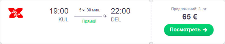 В Дели летим с авиакомпанией AirAsia 9 ноября. Стоимость билета – €65. Рейс прямой.