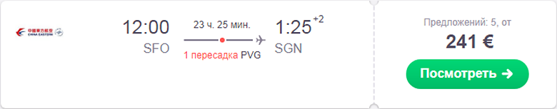 Следующая остановка – Хошимин. Вылетаем 27 октября. Билеты обойдутся в €241. На пути будет пересадка в Шанхае (дневное ожидание – 4 ч. 40 мин.).