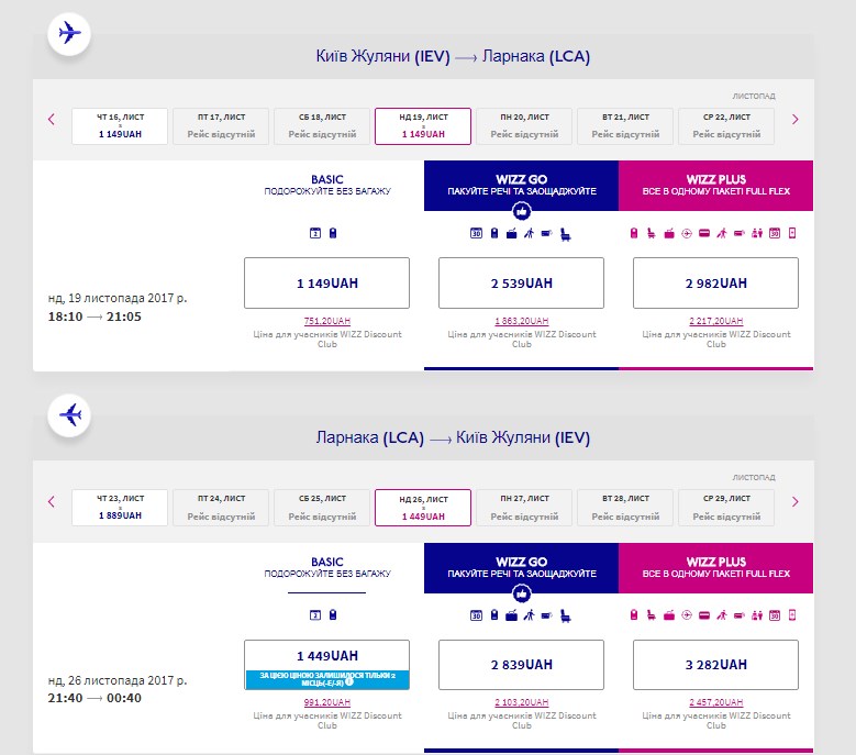 Бронювання зі знижкою можливо тільки 4 жовтня на сайті wizzair.com.