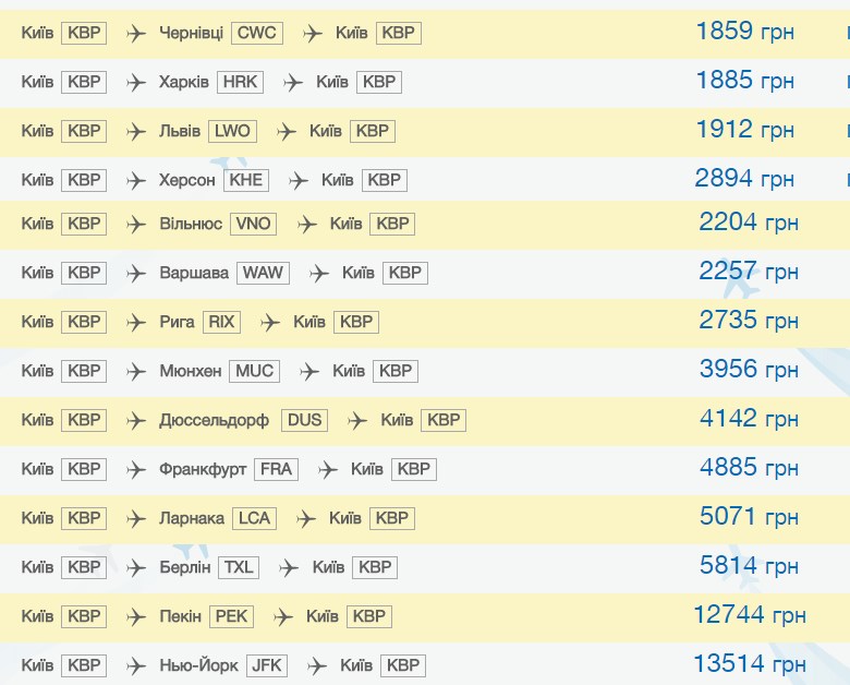 Ціни вказані в обидві сторони з урахуванням аеропортових та інших зборів. Кількість місць обмежена.