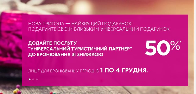 Wizz Air: знижка 50% на послугу «Універсальний туристичний партнер» для бронювань в період з 1-4 грудня. Можна додати до свого бронювання до 9 пасажирів, не вказуючи їхні імена.